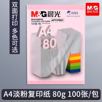 晨光(M&G)A4复印纸 彩色打印纸 80g加厚卡纸混色 粉红色100张/包